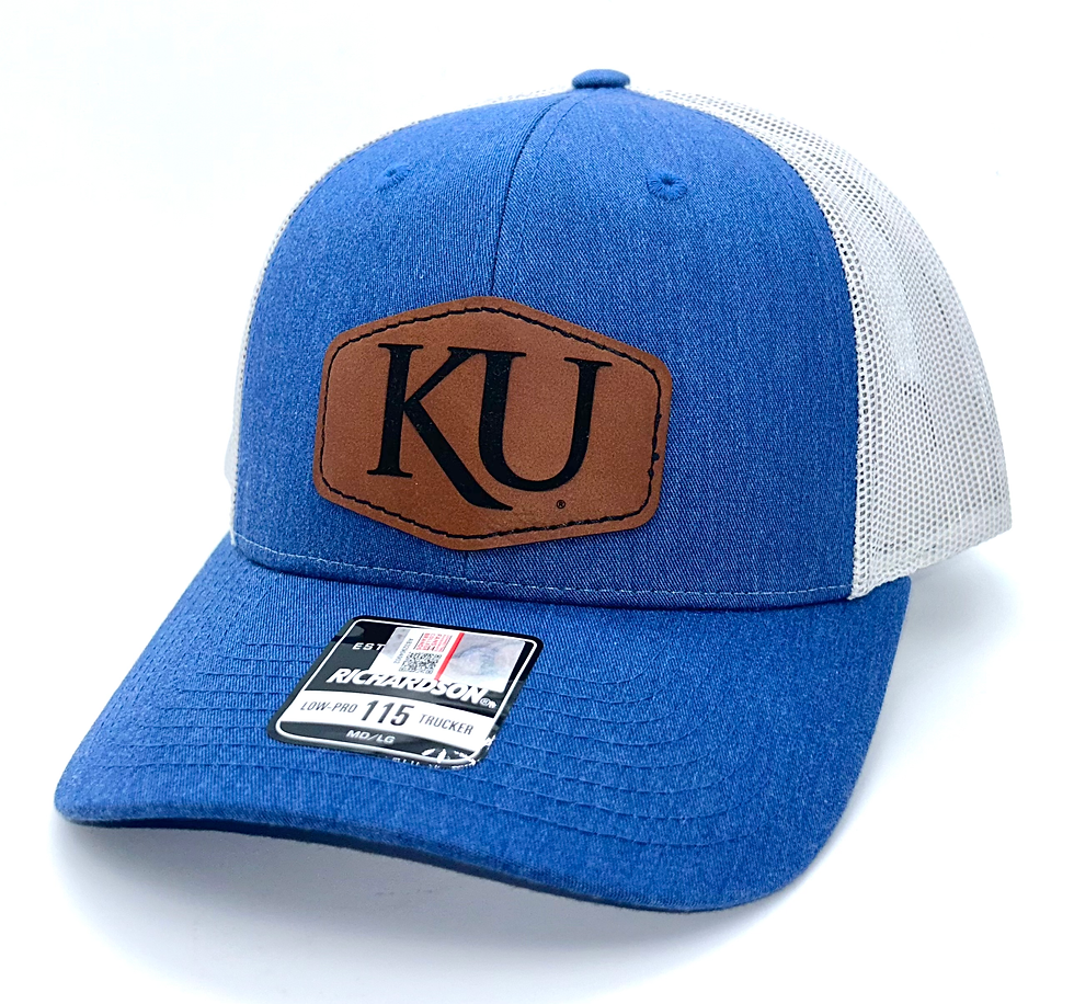 KU Letters Engraved on Round Patch Heather Gray and Blue Richardson 112 Hat